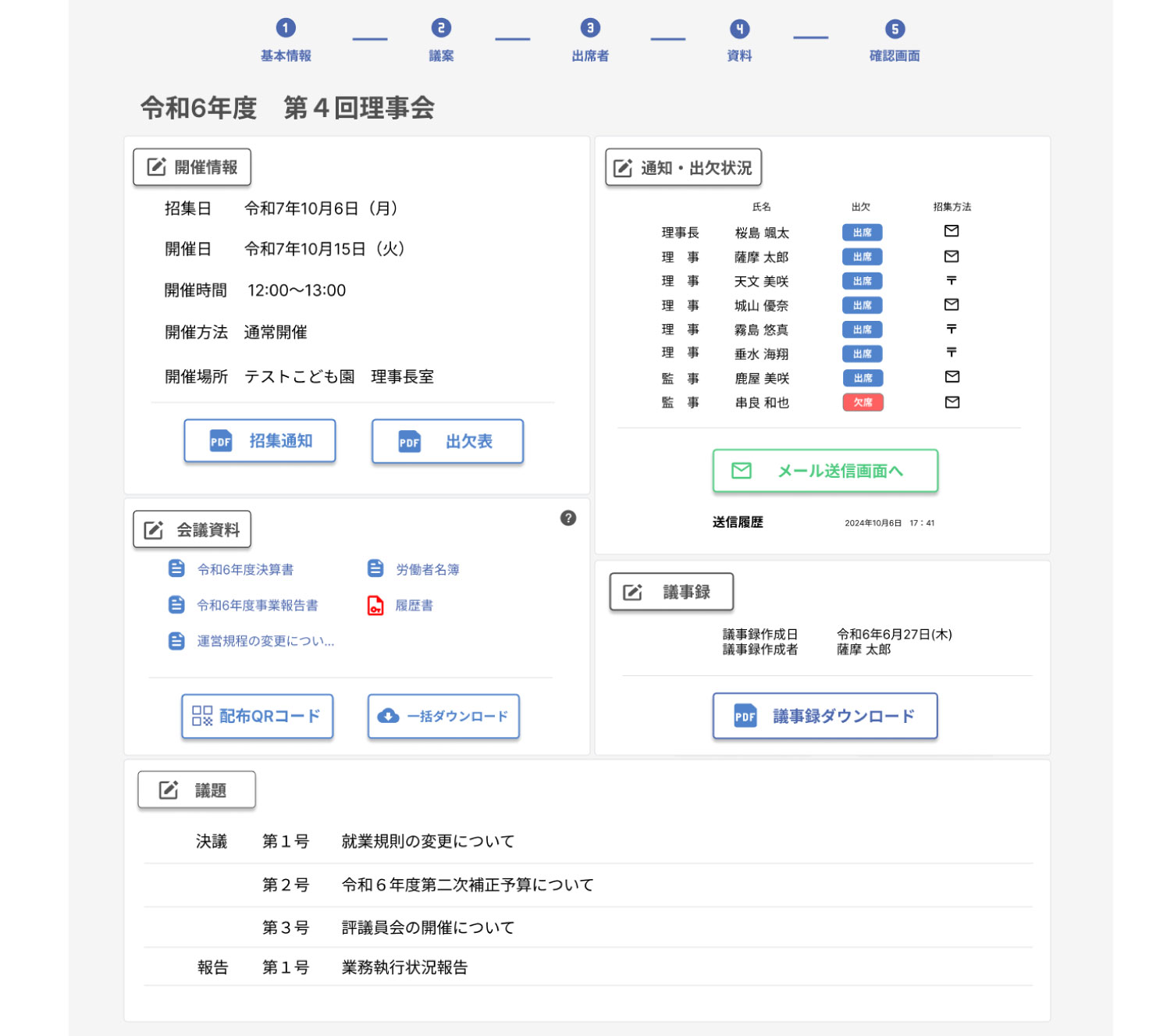 招集通知の作成から送付、議題に対してのシナリオや議事録の自動反映により、スムーズな運営を可能にします。