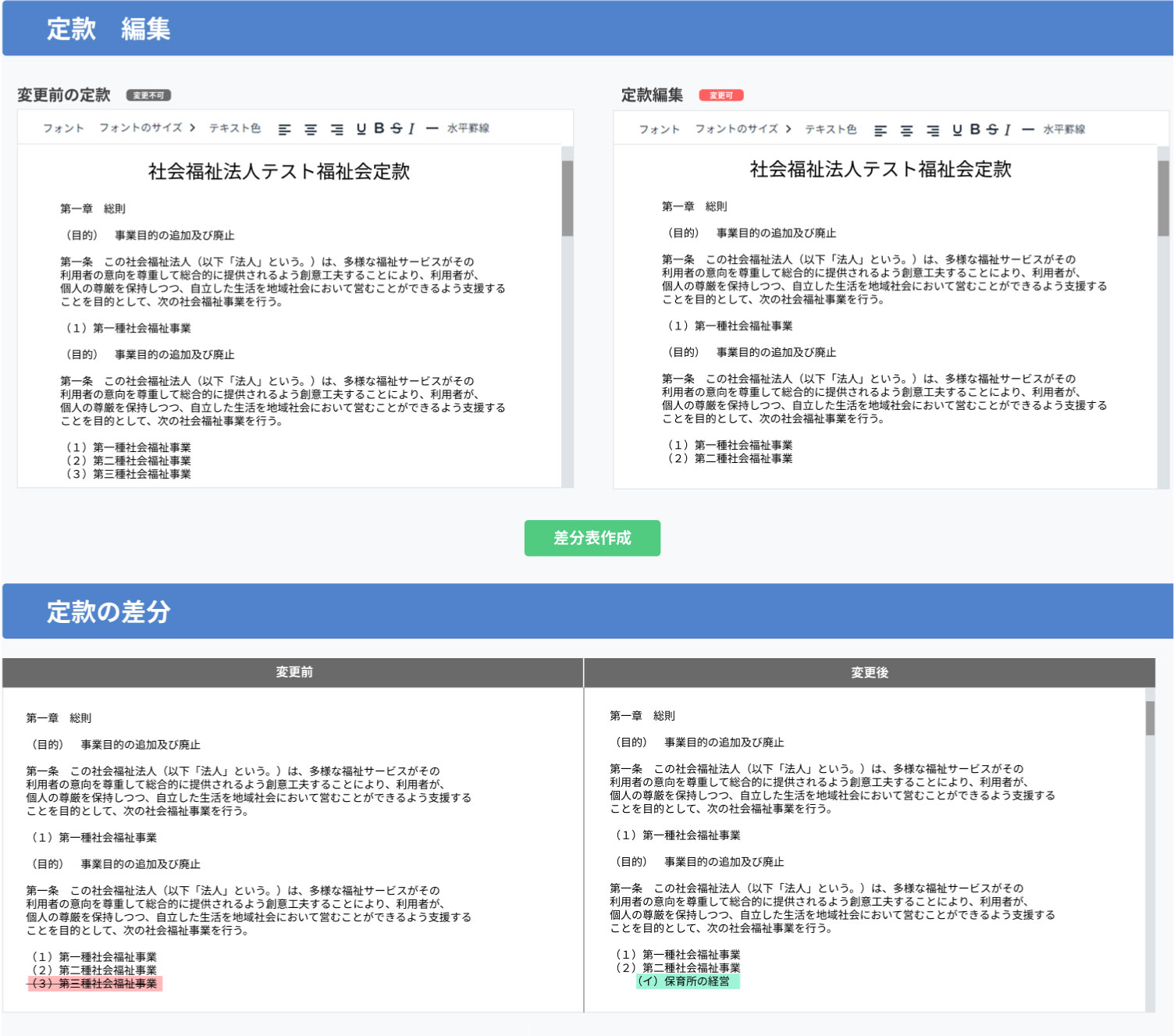 主に理事会・評議員会・選任解任委員会と定款に関する事項と規程しています。